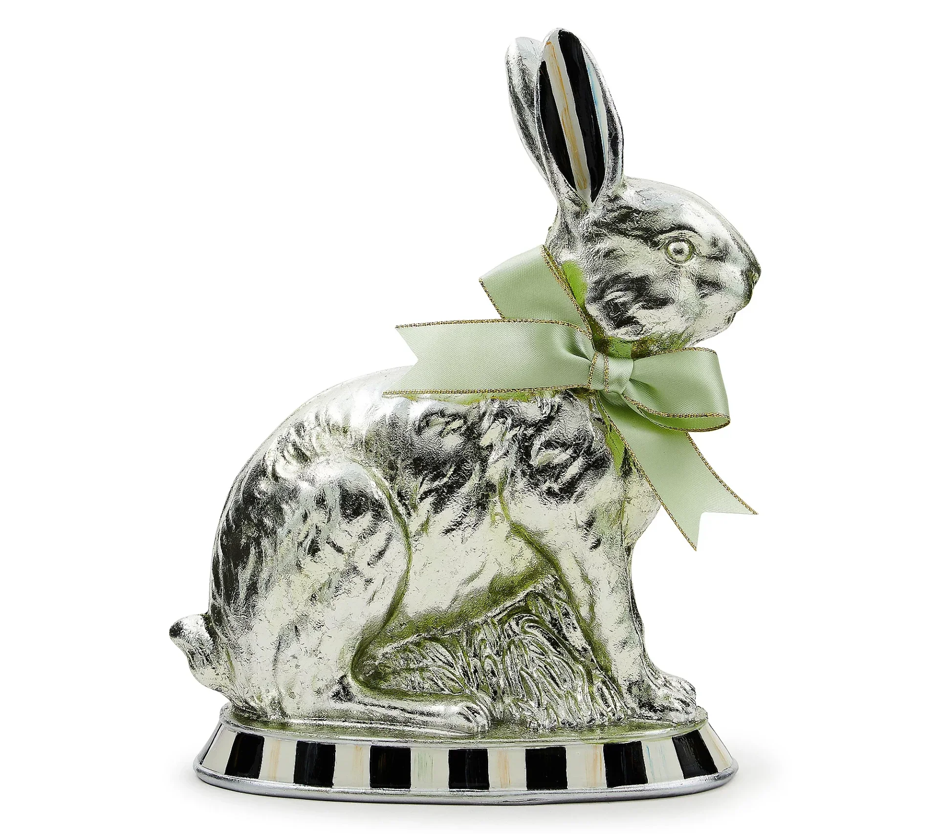 MacKenzie Childs Small Calico Foil Bunny. This elegant hand-crafted bunny looks ready to unwrap, but this Calico bunny is not the edible edition. He's here to add charm and whimsy to your spring decorating efforts (and a smile to your face). Currently Free Shipping, but subject to change.